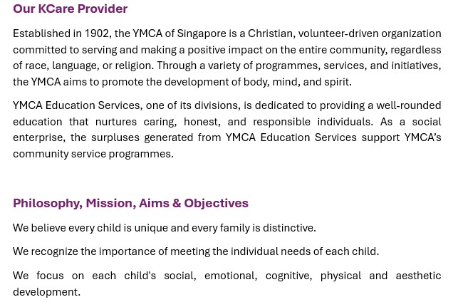 Currently, the YMCA of Singapore operates 5 Kindergarten Care centres and 20 Student Care Centres across the island.